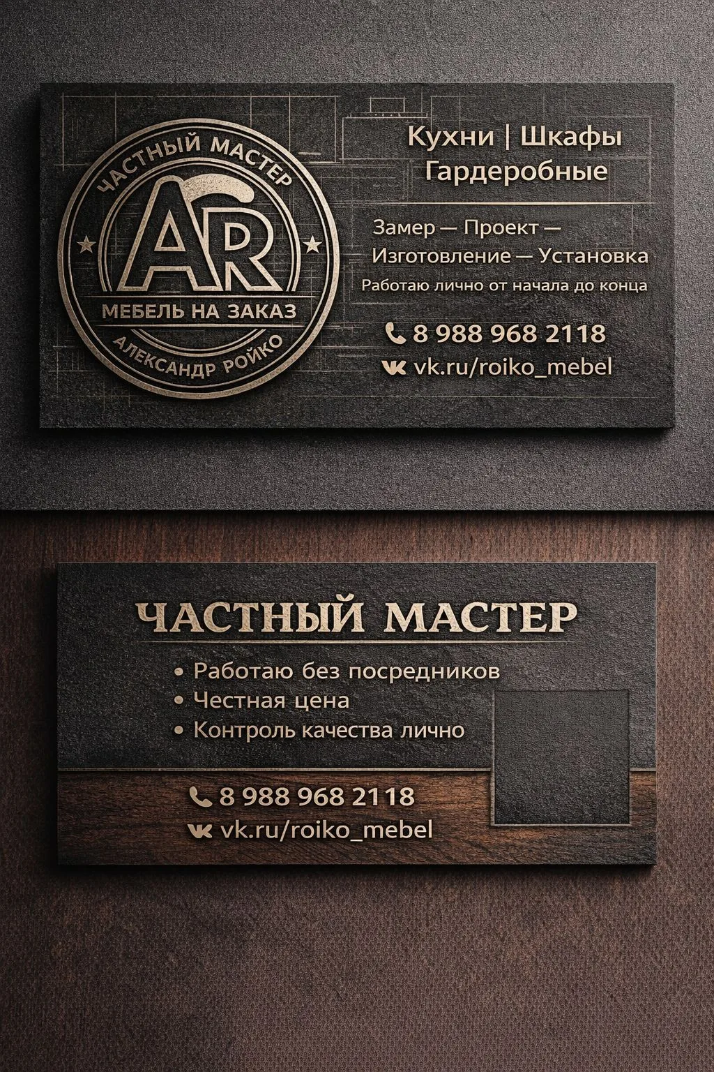 Меня зовут Александр Ройко. Я частный мастер по корпусной мебели с опытом более 20 лет. Делаю кухни, шкафы и гардеробные на заказ — без фирм, посредников и менеджеров. От замера до установки работаю лично сам и отвечаю за результат. Я выполняю ограниченное количество заказов 📊, чтобы обеспечить их высокое качество ✨. Если вам нужна мебель, которую делают не на скорость, а на годы— вы по адресу!