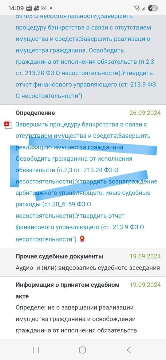 Услуги по освобождению от требований кредиторов (банкротство)