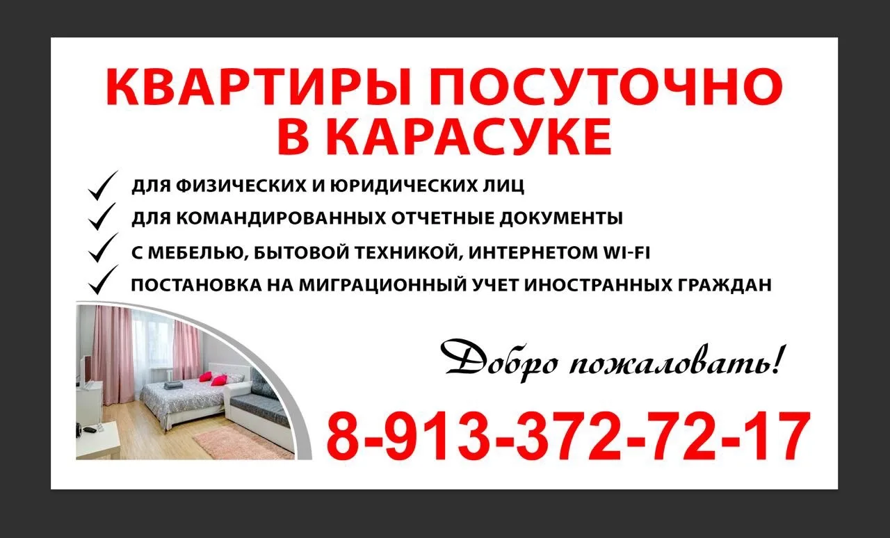 КВАРТИРЫ ПОСУТОЧНО В КАРАСУКЕ