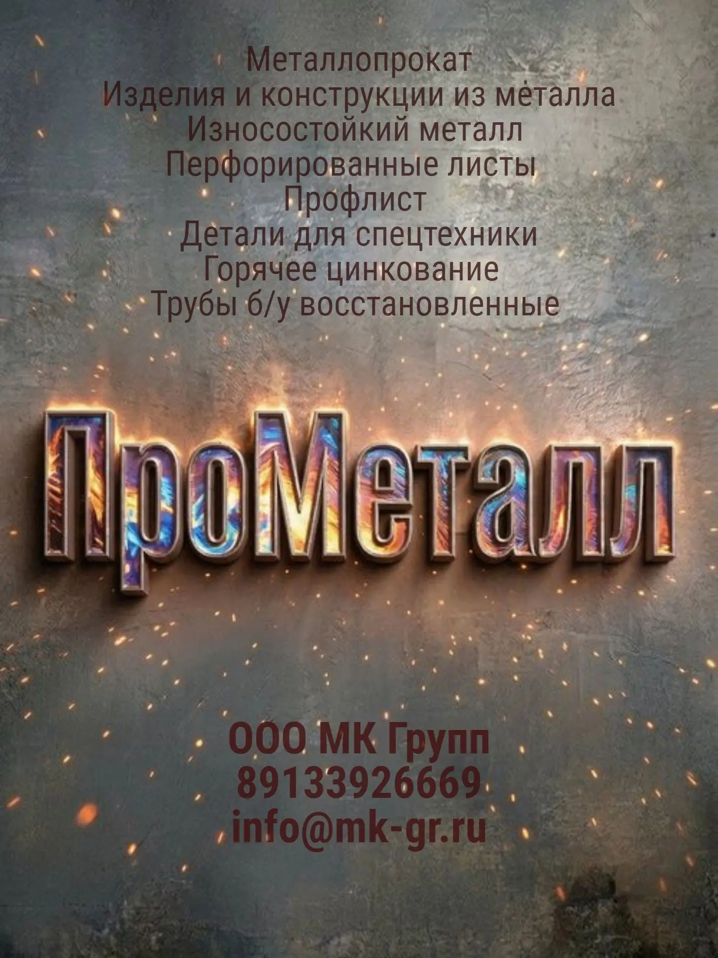 ООО МК Групп надежный поставщик металлопроката. Черный металл (лист, труба, арматура), Цветной металл (алюминий , медь, латунь, титан) , Износостойкий металл (Hardox NM), Перфорированные листы Профлист Трубы б/у восстановленные Изготовление изделий и конструкций из металла Детали для спецтехники , сито грохота, ножи для спецтехники Услуга горячего цинкования info@mk-gr.ru 89133926669