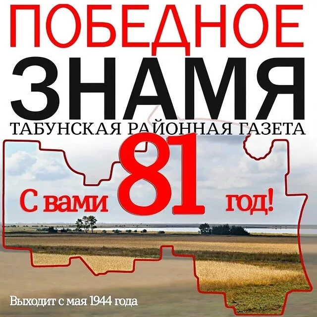 Табунская районная еженедельная газета E-mail: pobedtab@mail.ru Официальный сайт: http://pobedtab.3dn.ru/ Группа в ВКонтакте: https://vk.com/pobedtab Одноклассники: https://ok.ru/pobednoeznamya.tabuny Телефоны для объявлений: 8-(385-67)-22-5-65, 22-2-65.